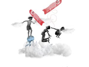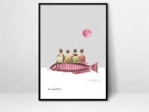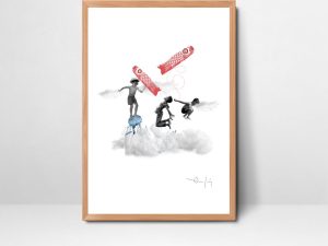 45,00 €Seleccionar opciones Este producto tiene múltiples variantes. Las opciones se pueden elegir en la página de productoCollage ilustración fantasía de 3 niños surcando las nubes mientras pescan peces de papel en un sueño de una tarde de verano. Ilustración Collage impresa sobre papel extra blanco rugoso.…